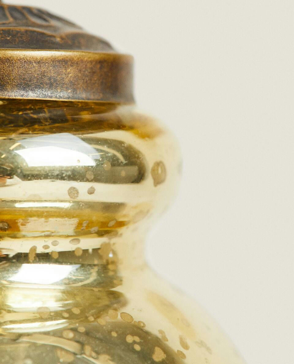 Mercurised glass Christmas tree decoration in the shape of a droplet with a shiny effect and a ribbon for hanging.