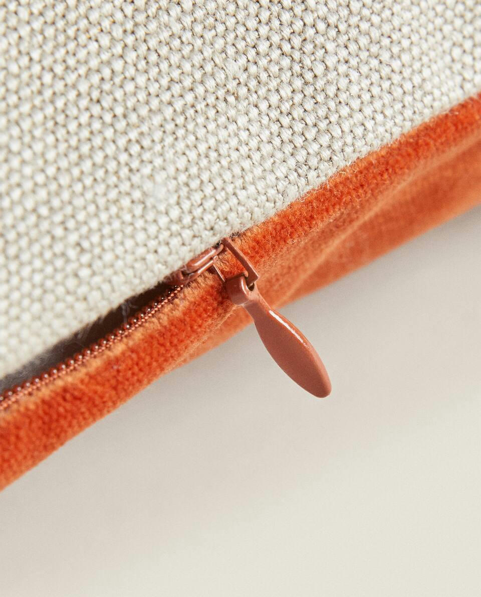 Linen blend cushion cover with a plain design, made of linen on one side and made of velvet on the other.