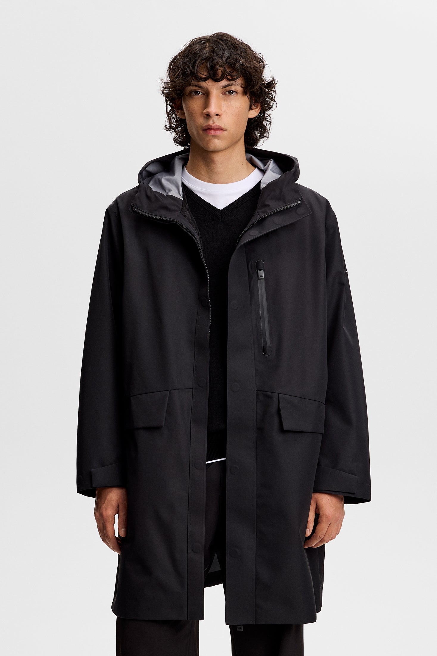 Der Alonso Parka kombiniert alltägliche Funktionalität mit elegantem Design. Er ist aus wasserabweisendem Stoff gefertigt und verfügt über ein Mesh-Futter, mehrere Taschen und eine verstellbare Kapuze. Mit seiner langen Silhouette und klaren Linien ist er perfekt, um nassem Wetter in der Stadt zu trotzen und dabei einen eleganten, modernen Look zu bewahren.