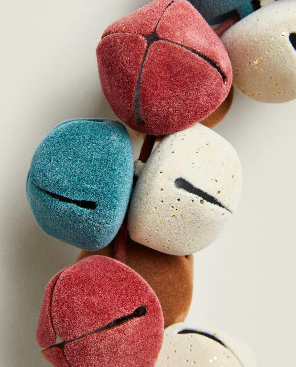Decorative Christmas wreath with multicoloured sleigh bells.