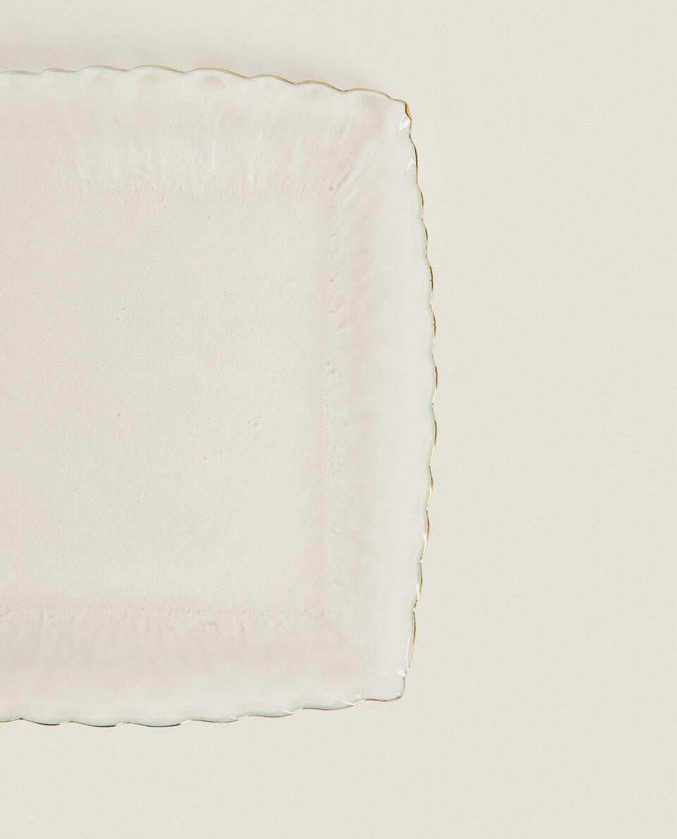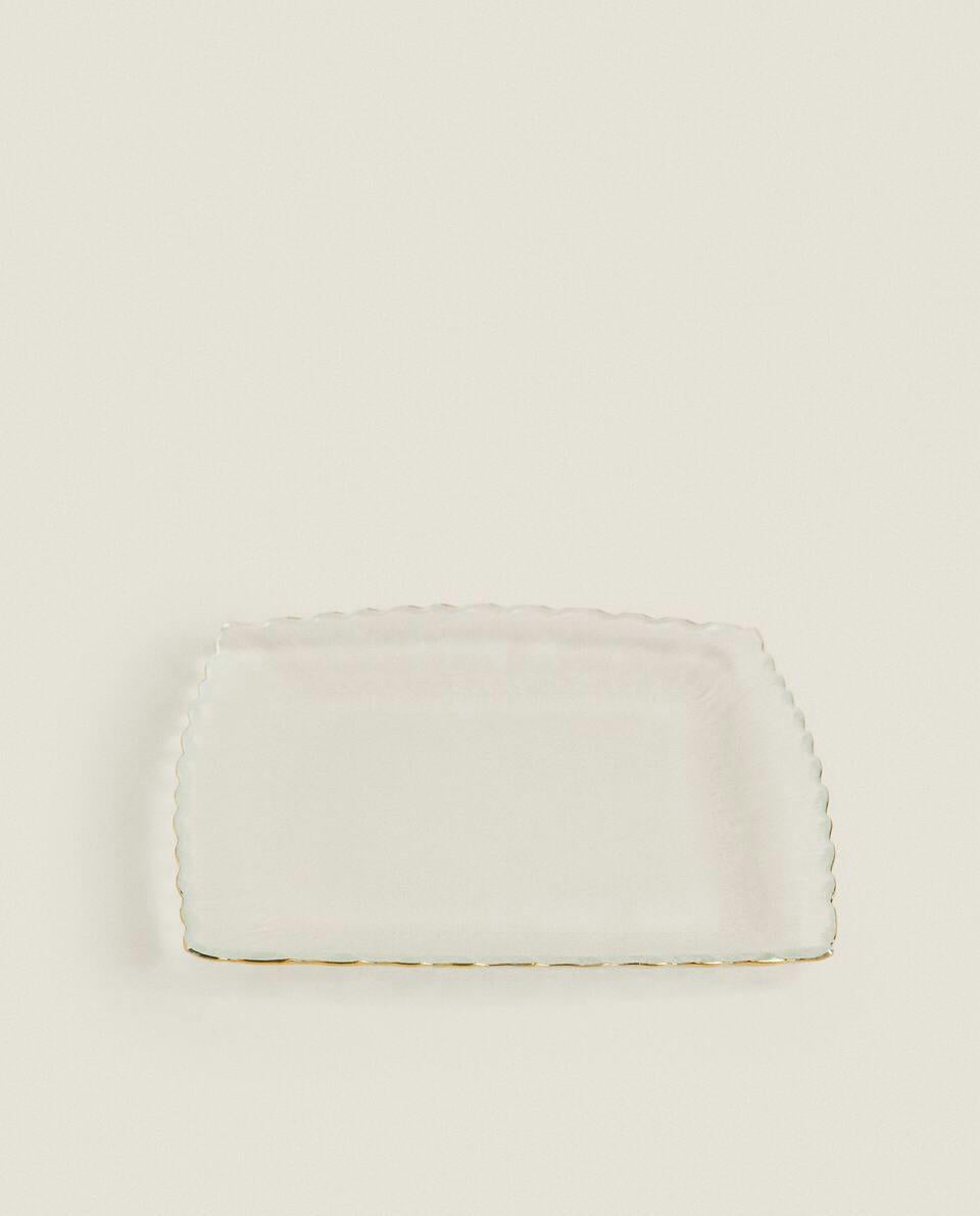 CHRISTMAS GLASS DESSERT PLATE WITH GOLD RIM