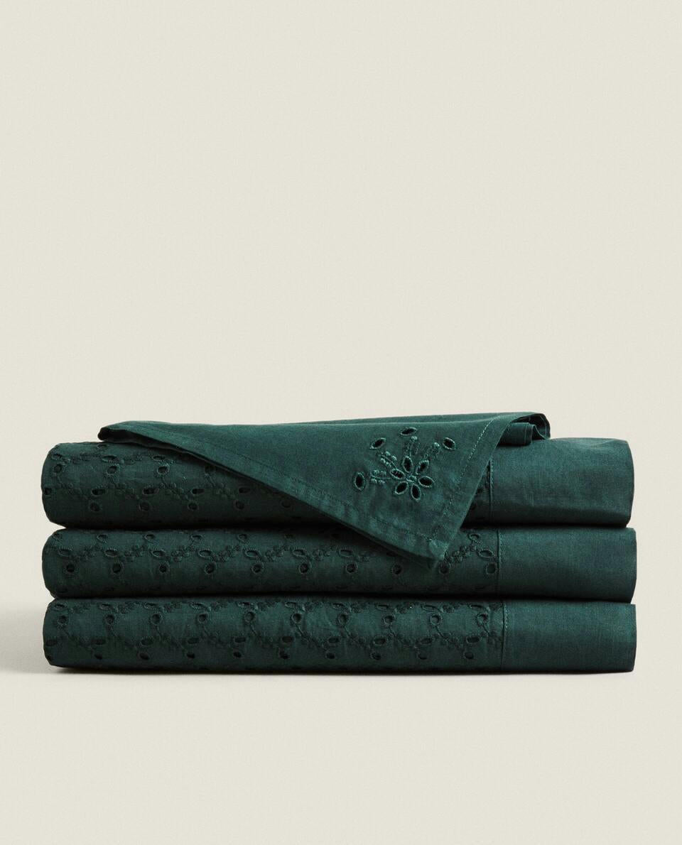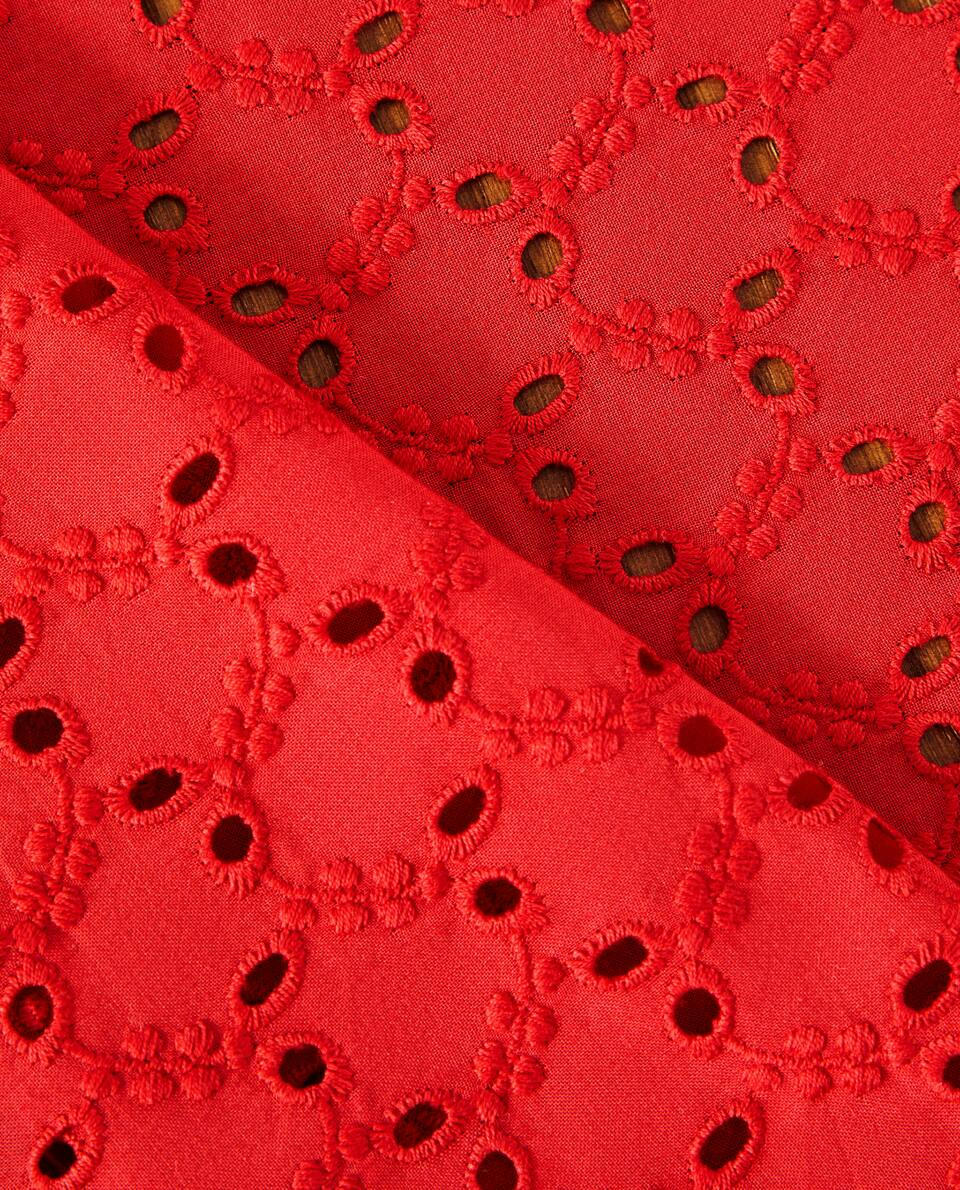 Christmas cotton tablecloth with broderie and openwork anglaise.