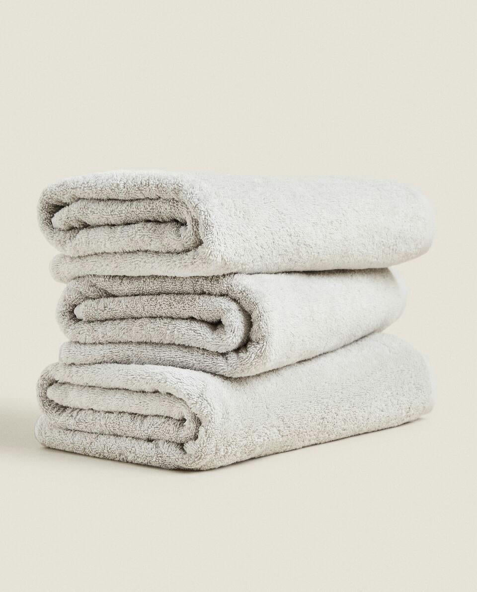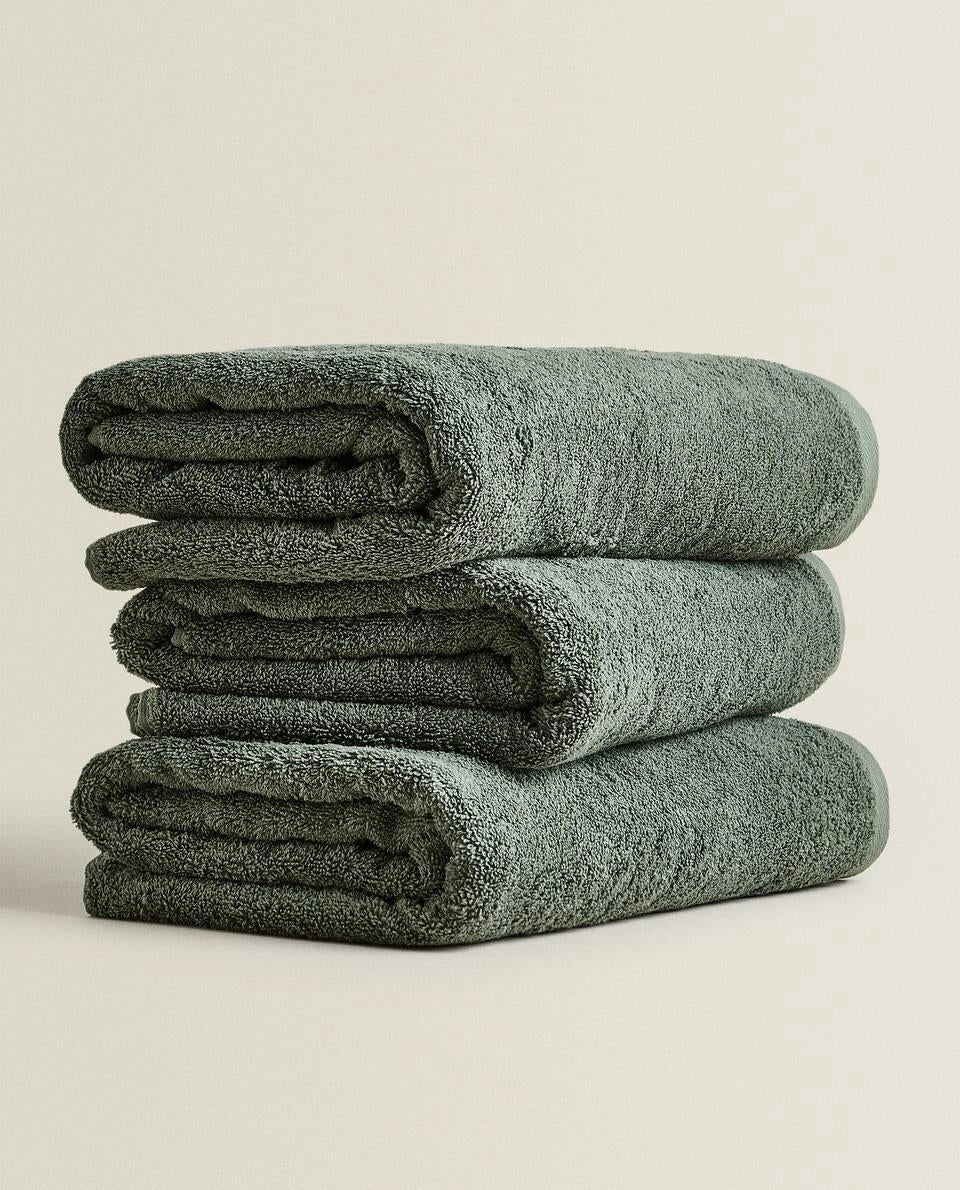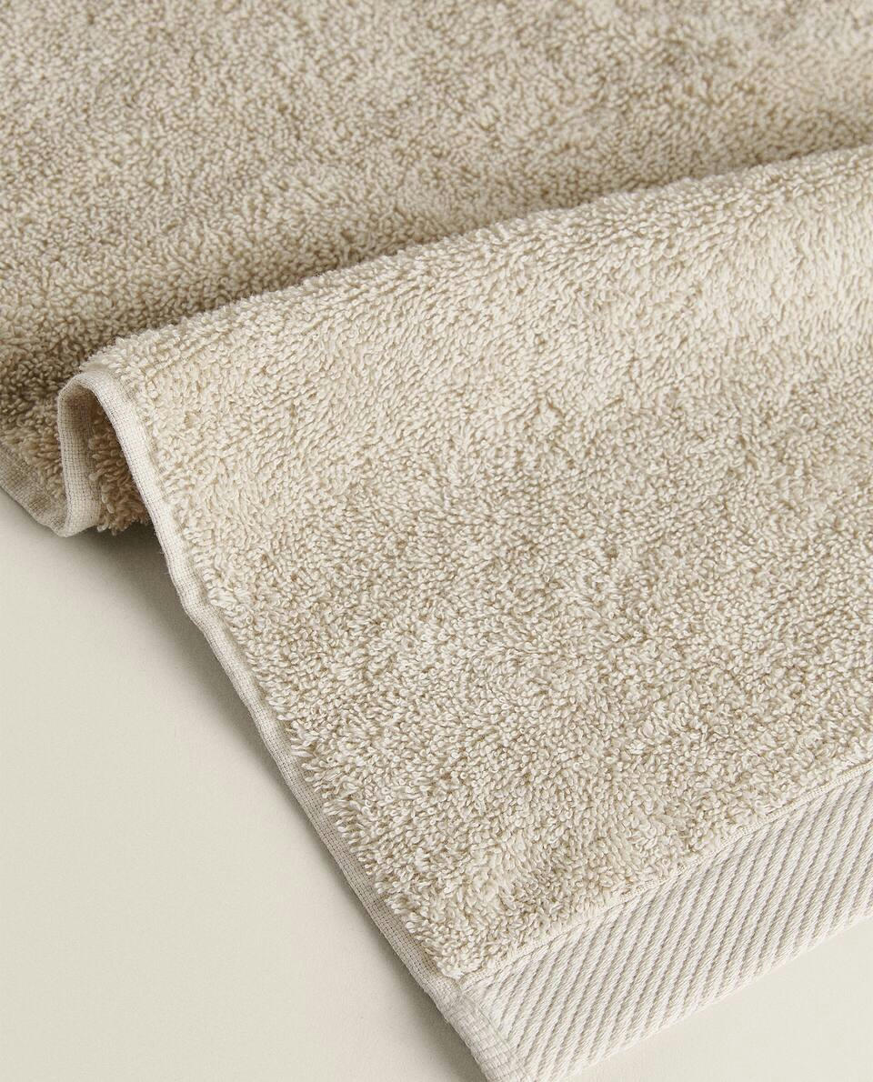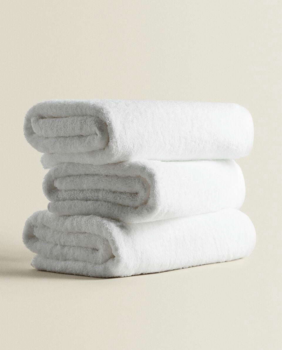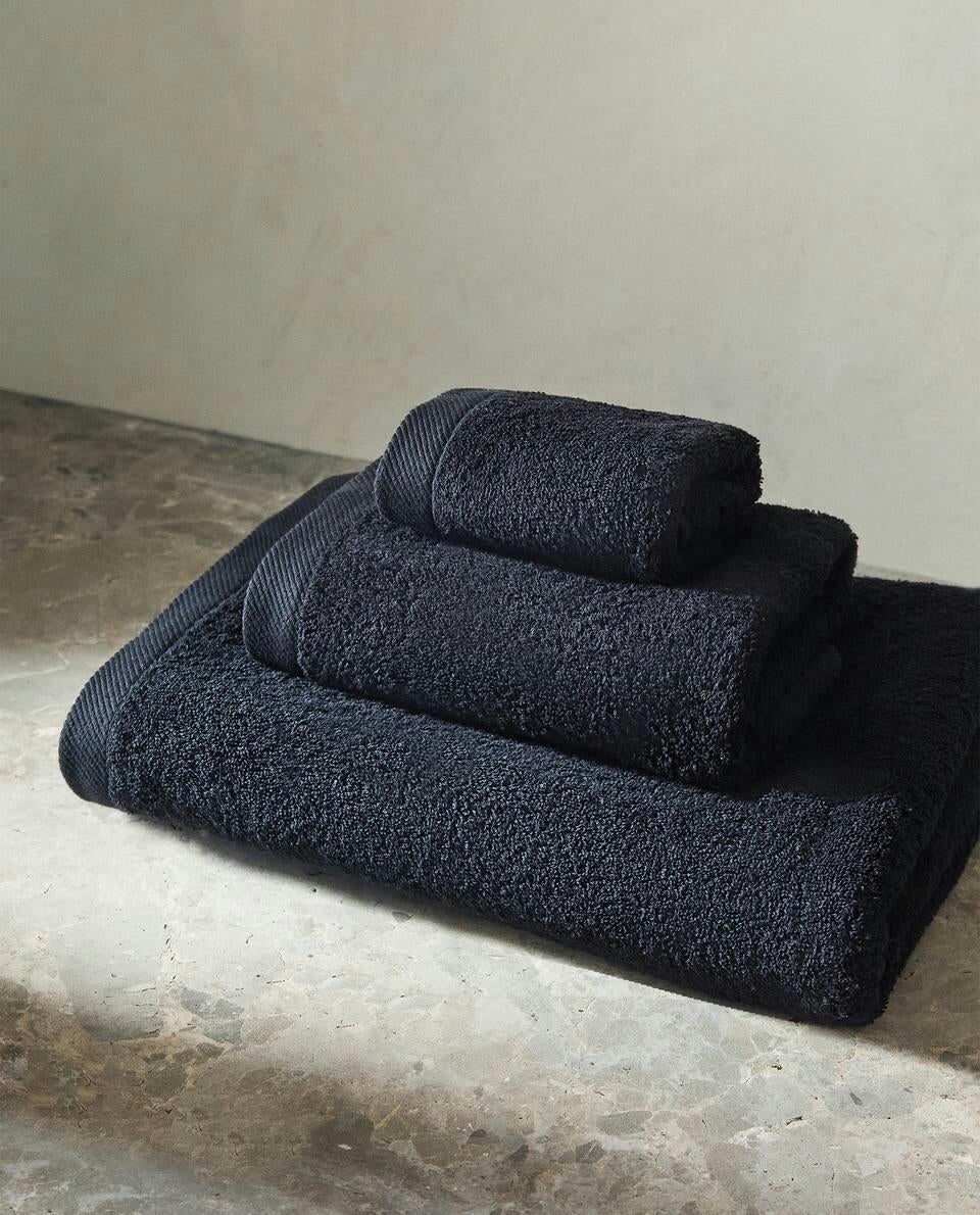 Bath towel made of 500 g/m2 cotton terry with a plain design.
