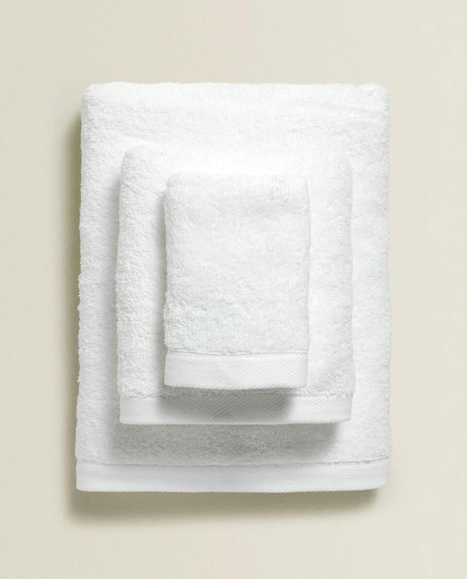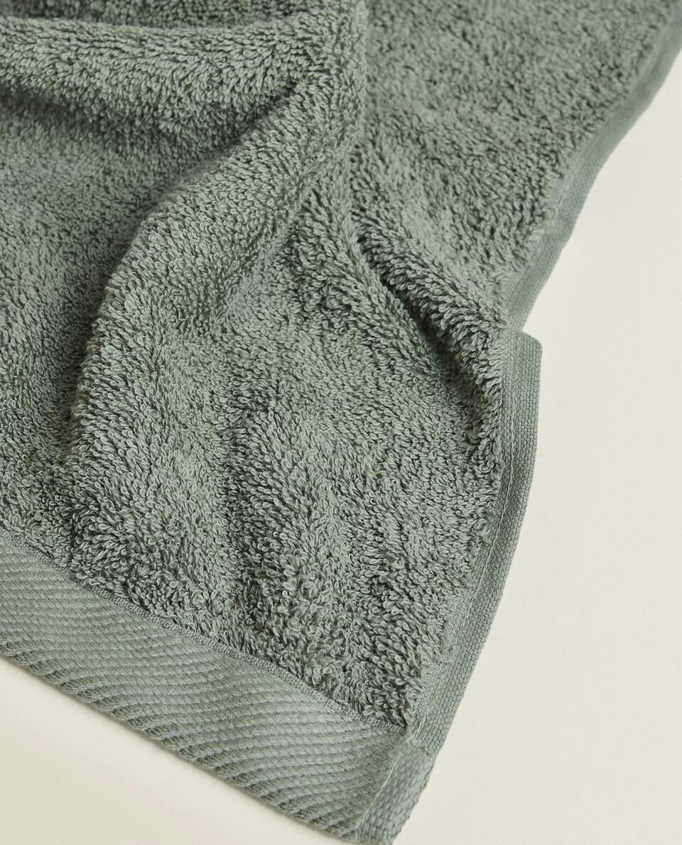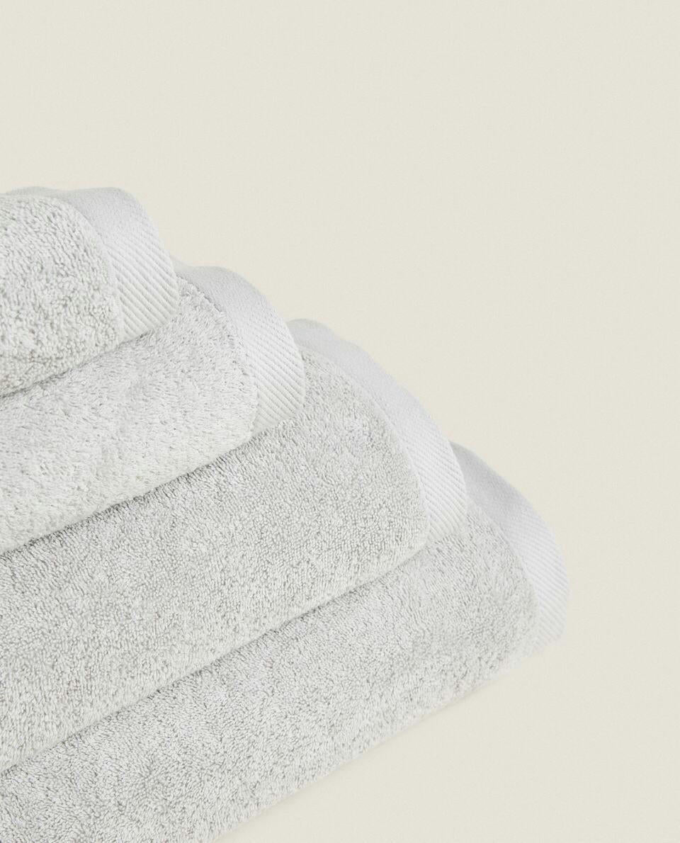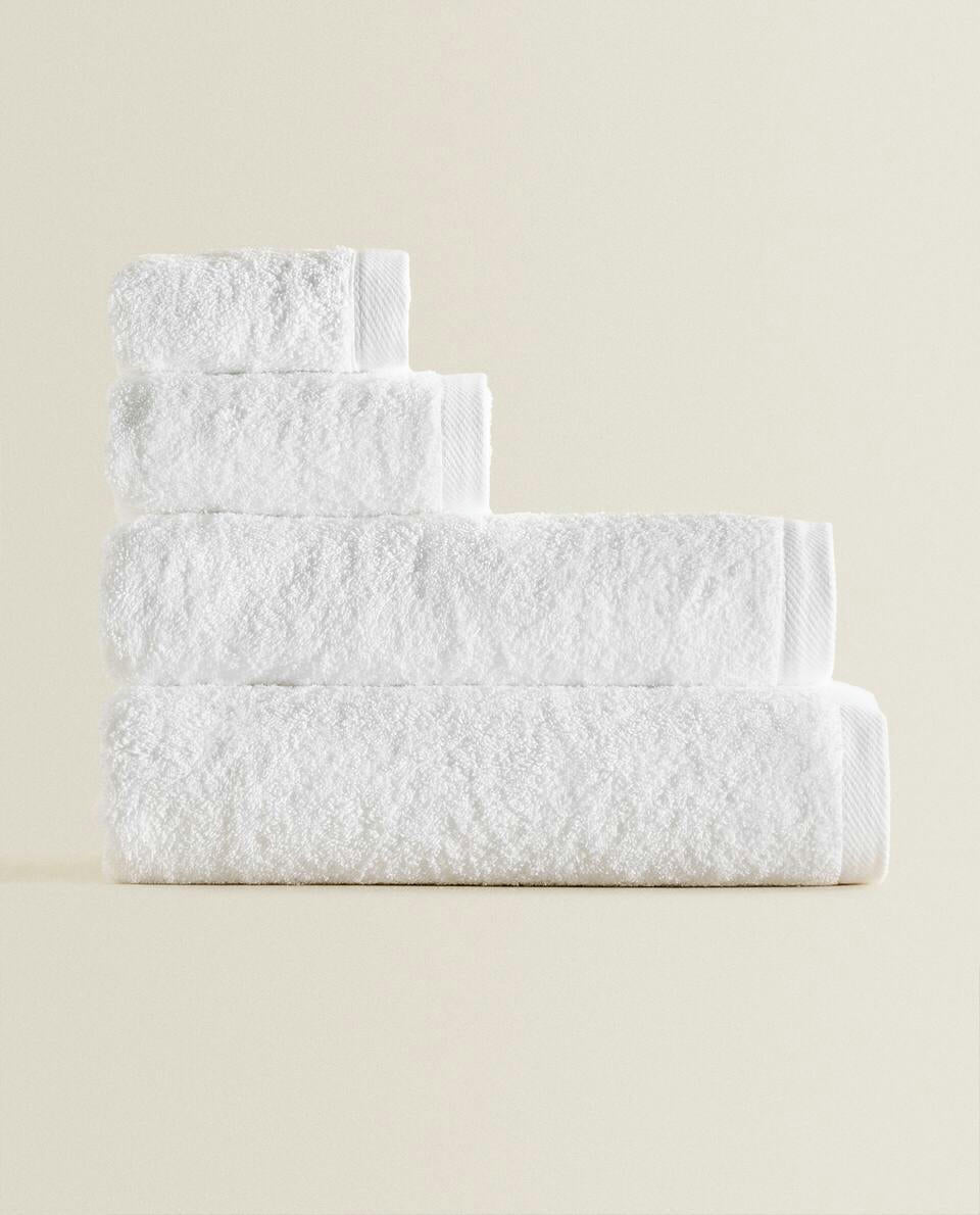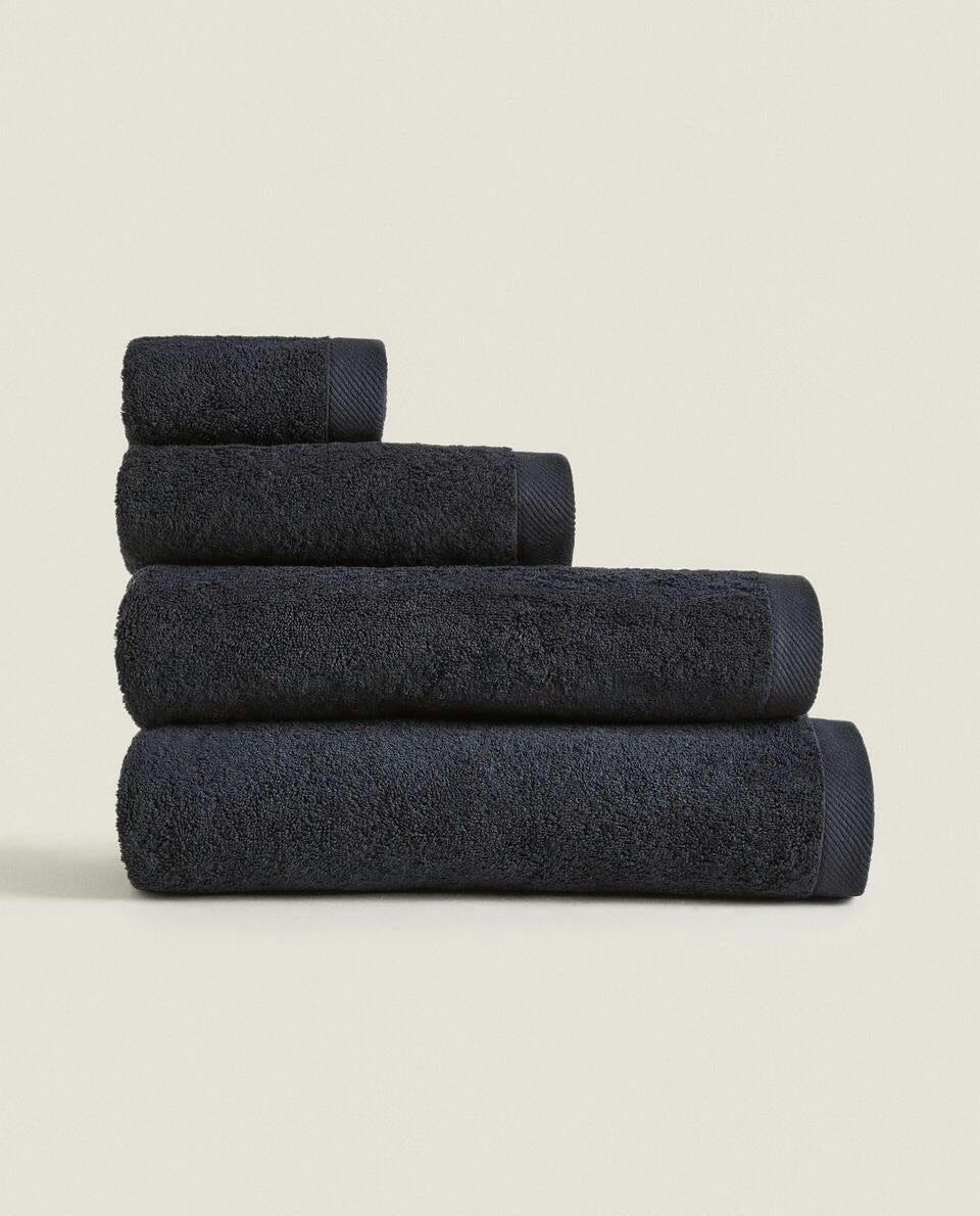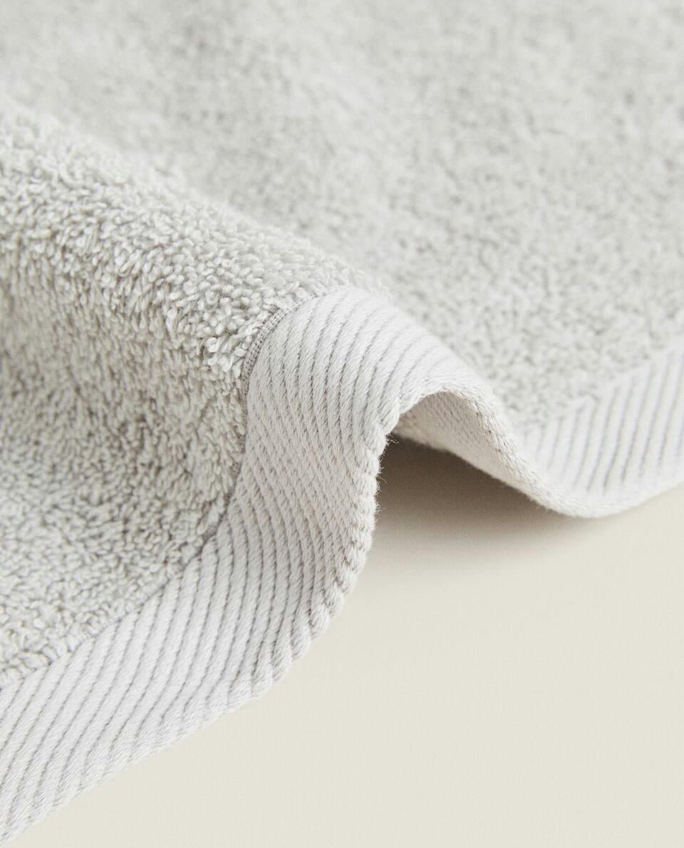 Bath towel made of 500 g/m2 cotton terry with a plain design.