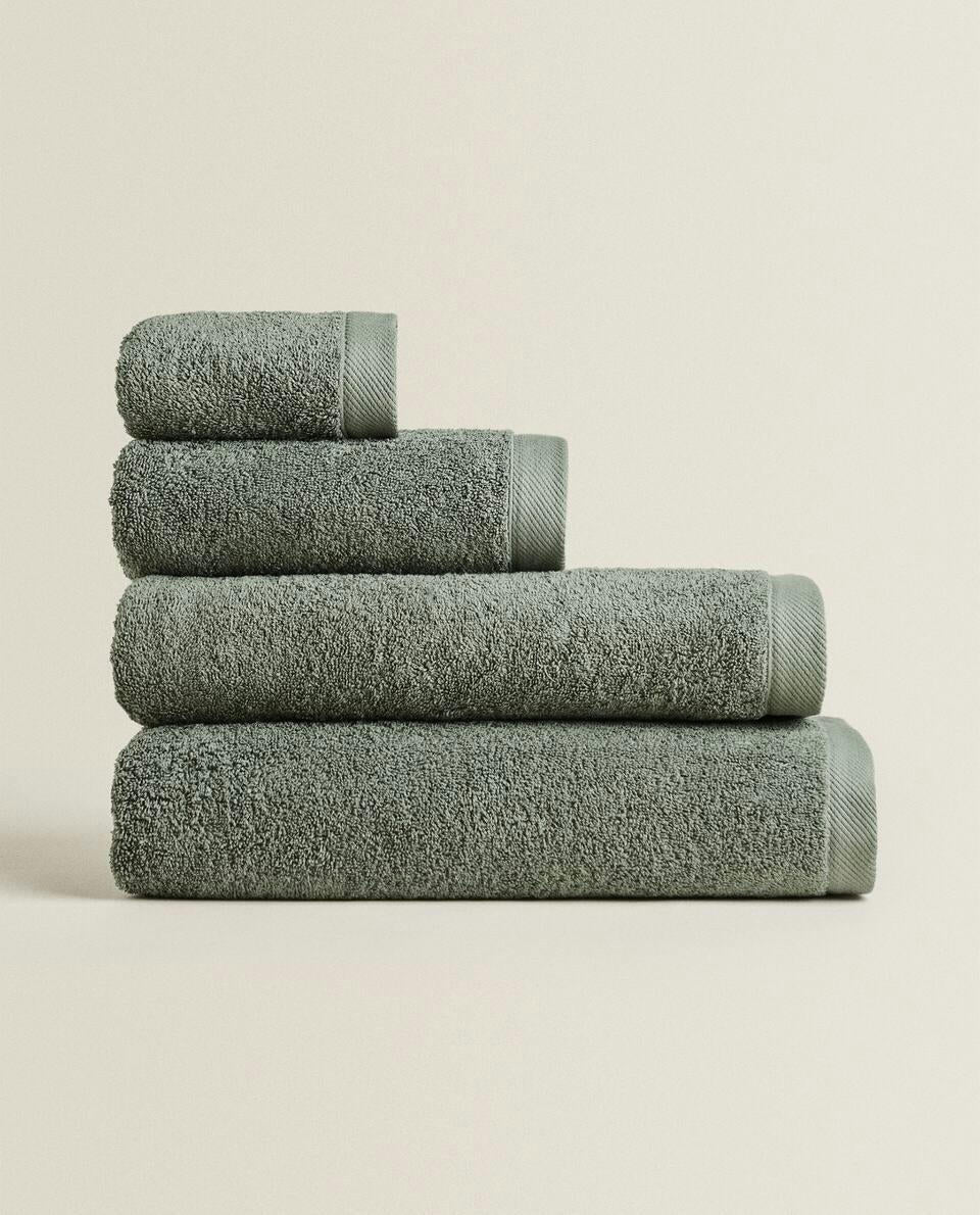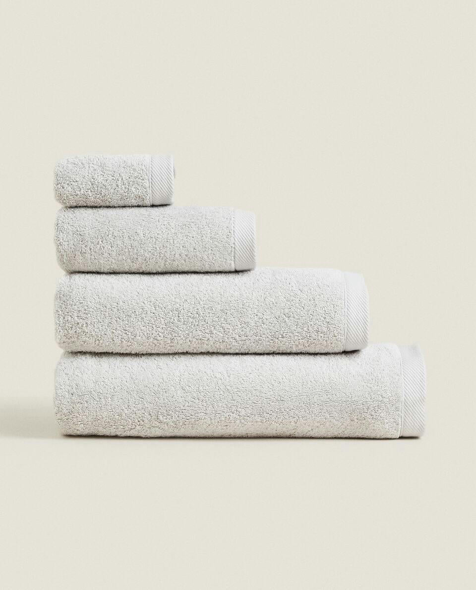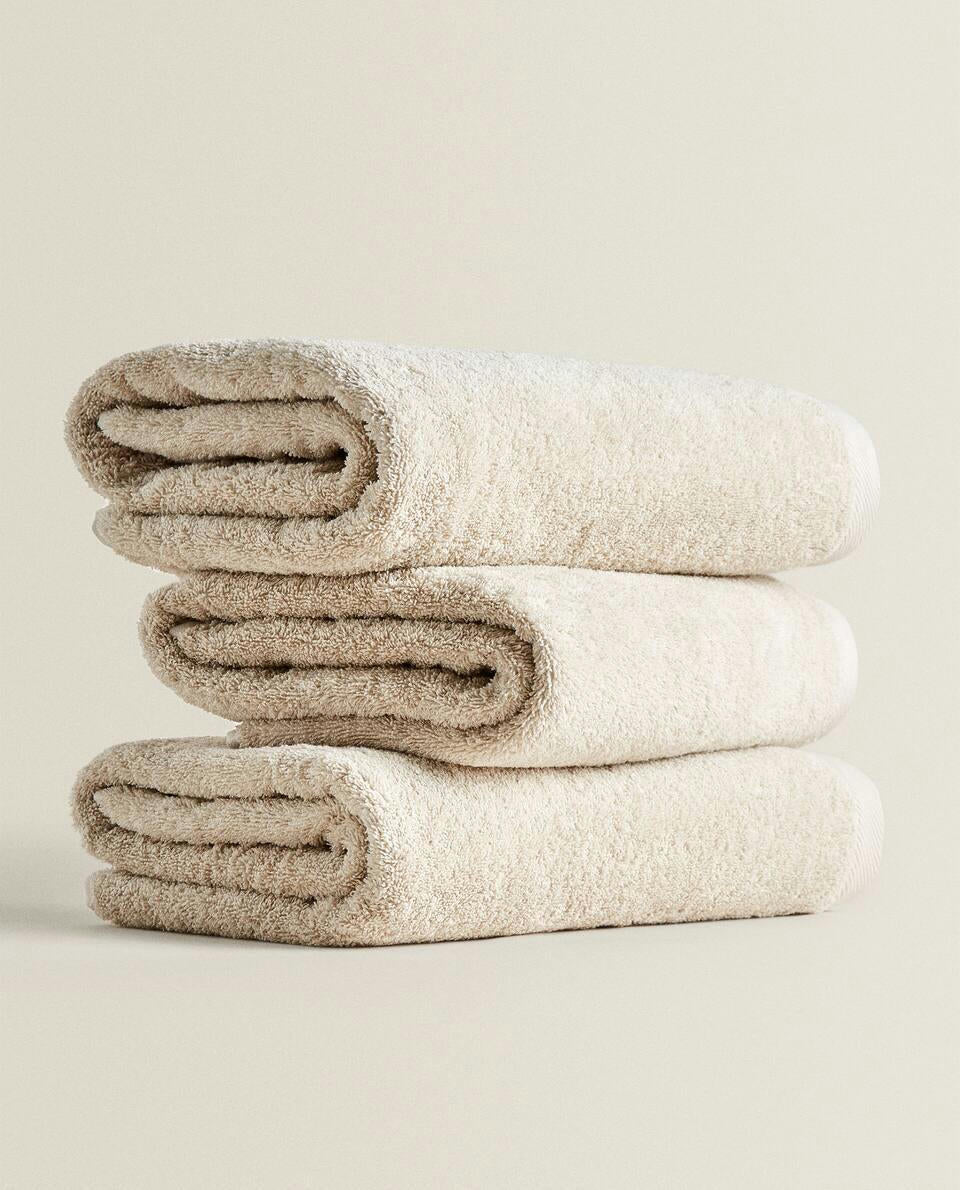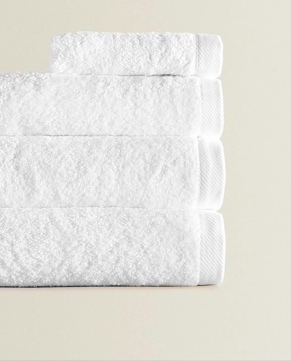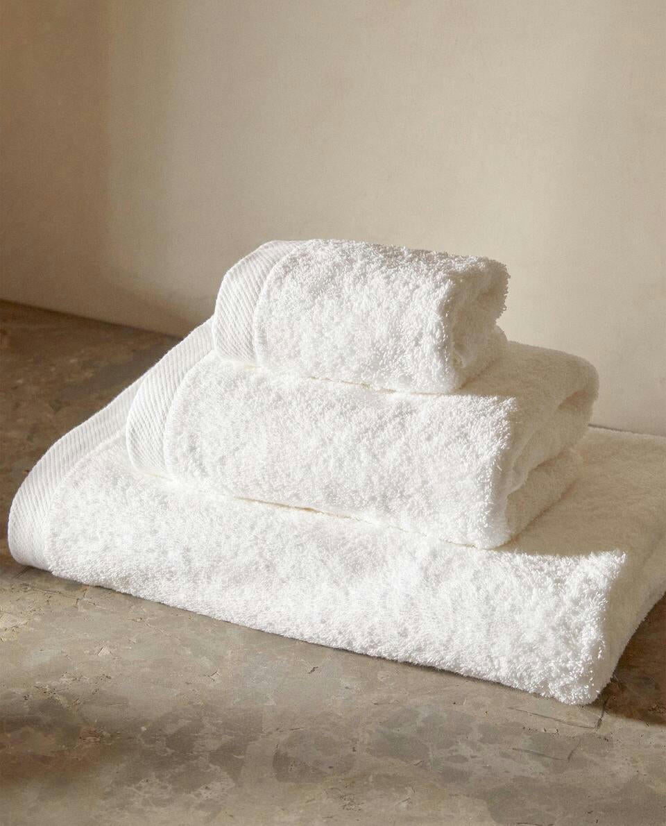 Bath towel made of 500 g/m2 cotton terry with a plain design.